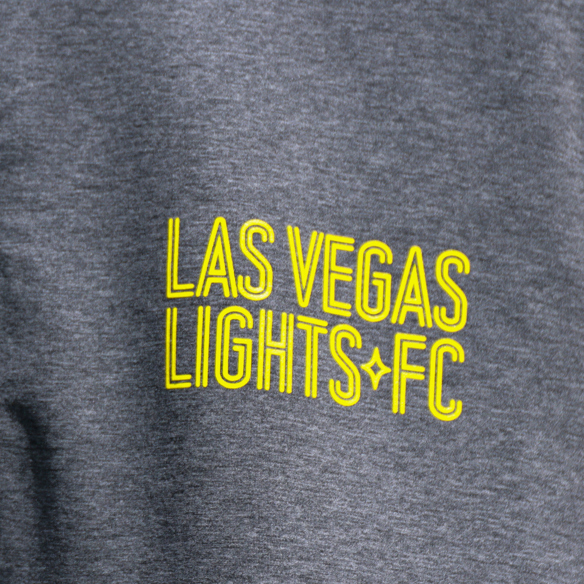 A Gray jacket with a 1/4 zip in between the Light's emblem and "Las Vegas Lights" in bright yellow lettering.